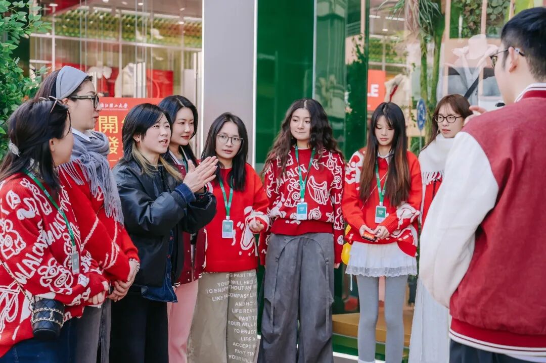 活动得到校企双方的高度重视与全力支持。森马创意高级总监黄华琳,设计高级专家李建国等企业代表,与浙江理工大学服装学院产教融合协同中心主任周伟及教师代表严昉、陈翔等共同全程参与现场指导。活动全链路环节均由浙江理工大学服装学院师生自主完成,从前期的活动策划、视觉设计、项目落地,到活动现场的门店氛围陈列、产品搭配推荐、消费者互动引导,学生们将课堂理论知识充分转化为实践能力,以新生代创意视角为活动注入活力,让门店洋溢着浓厚的新年气息与青春朝气。